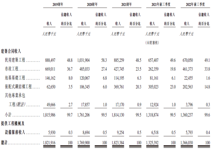 中天建设主要提供工程施工服务,涵盖民用建筑工程服务、市政工程服务、地基基础工程服务、装配式钢结构工程服务、其他包括建筑装修装饰等在内的专业承包工程。公司在从项目采购、管理、施工到监理的整个建设过程中为客户提供综合建设服务。此外,公司亦从事提供工程机械及设备服务。