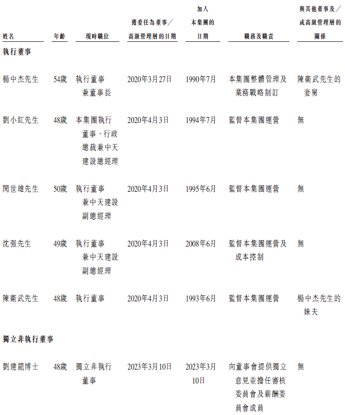 中天建设董事会由8名董事组成,包括5名执行董事、3名独立非执行董事。