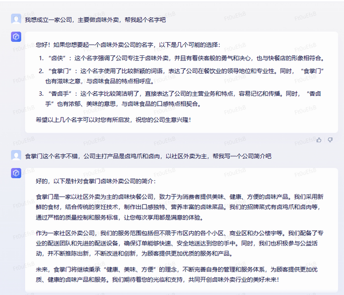 那么文心一言能不能实际使用呢?比如我想开个卖卤味的小店,能不能请它帮忙?
