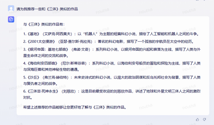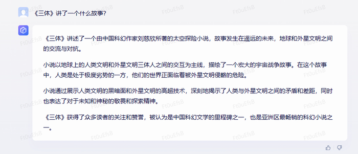 首先,我们接着发布会的话题,接着问它一些关于《三体》的问题。