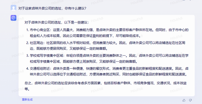 很不错啊,我感觉省了一大笔请广告公司的钱。那是否可以让它再给我开店的选址提供点建议呢?