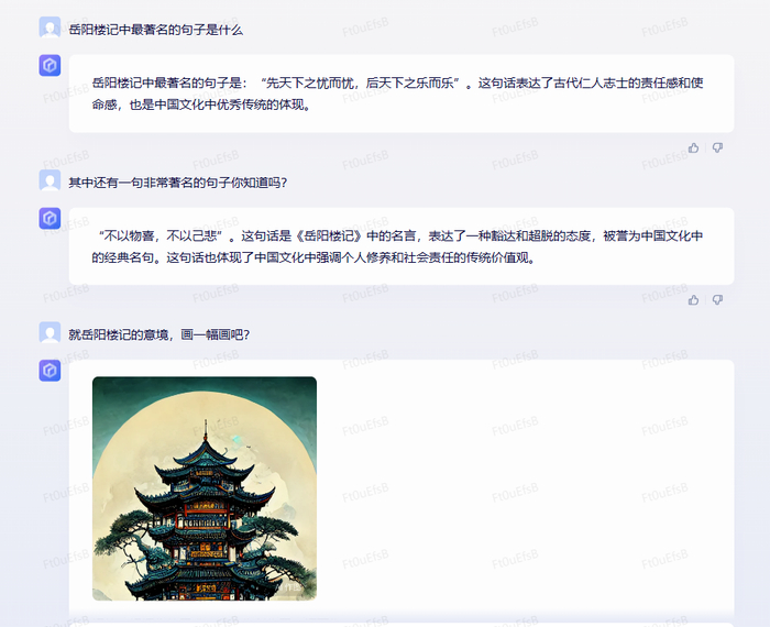 最后,我们再来考察一下文心一言的归纳能力和绘画能力吧,有请《岳阳楼记》。