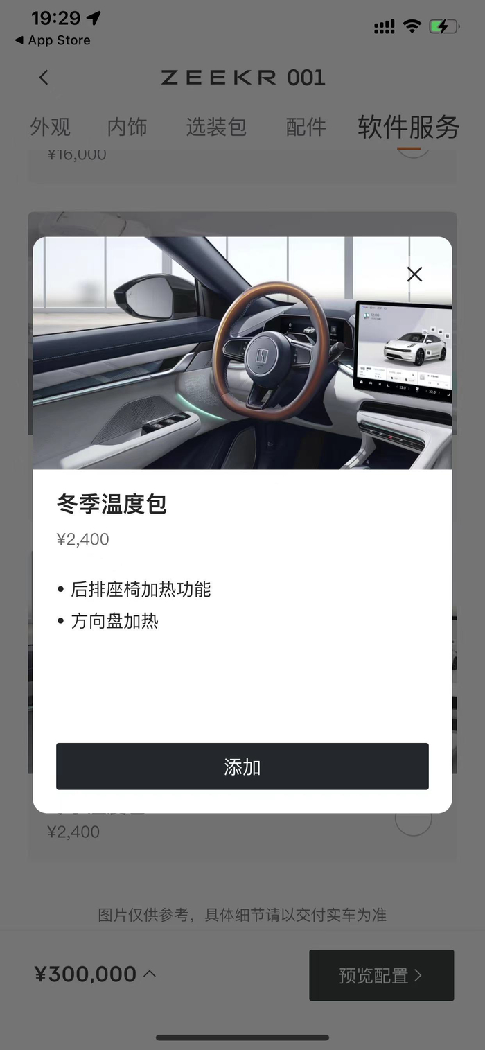 无独有偶,也有车主吐槽极氪汽车也预埋了硬件,需要车主后期购买服务包加装,如座椅加热功能。记者从极氪汽车APP上查询发现,极氪001 WE版如需方向盘加热和后排座椅加热功能需开通冬季温暖包软件服务,价格为2400元。