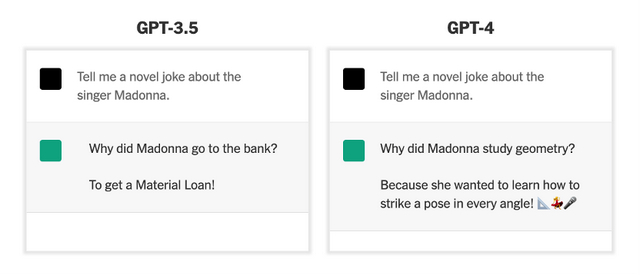 另外,经过最新信息的训练,GPT-4变得更能说了,也就是说它可以为用户的问题提供更多内容和回答。