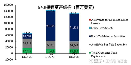 面对负债端资金的大量流入,硅谷银行资产端的可投资金也快速上升,在当时的低息环境下,它选择购买大量的美债和MBS(抵押贷款支持证券)。2020年年中到2021年末,硅谷银行美债持有量从40亿增长到160亿,MBS持有量从200多亿增长到1000亿,相当于将疫情两年新增流入的1100亿美元存款中的70%用于配置MBS。然而,在激进配置这些长久期资产的同时,硅谷银行并没有为应对存款流出预留出等比例的充足现金,2020年中至2021年中,其现金和现金等价物只由140亿增长到220亿,2021年末甚至还下降到130亿。