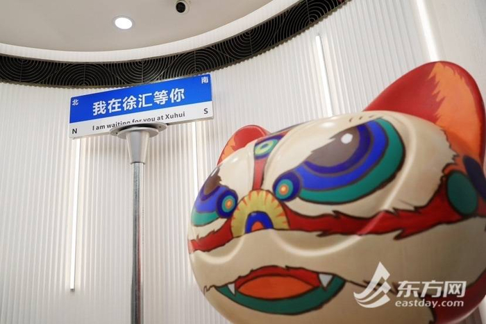 一走进门厅,“迎宾”的是复兴艺术节的卡通吉祥物——复兴猫。这只复兴猫被扮成中国传统习俗中的 “醒狮”造型,象征着智慧和力量的化身,寓意吉祥、繁荣、生生不息。