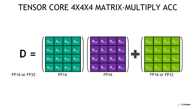 Tensor Cores是一种专为深度学习而设计的计算核心,它执行的是一种特别的矩阵式数学运算方式,非常适用于深度学习训练