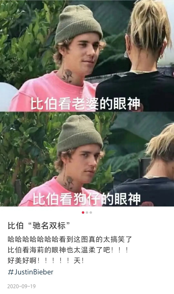 我清楚地记得曾经比伯因为看狗仔和海莉的眼光不同还上过热搜,人们大赞他们的恩爱。