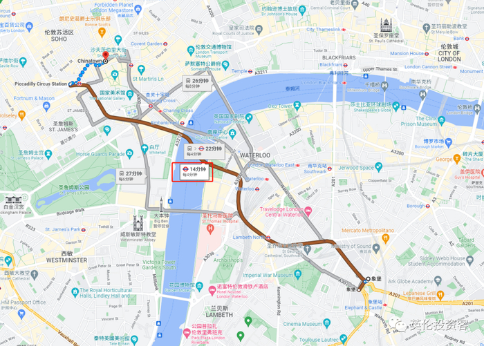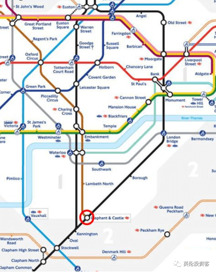 从项目出发,步行3分钟可达Elephant Castle地铁站,可乘坐地铁Bakerloo Line(棕线)和Nothern Line(黑线)。