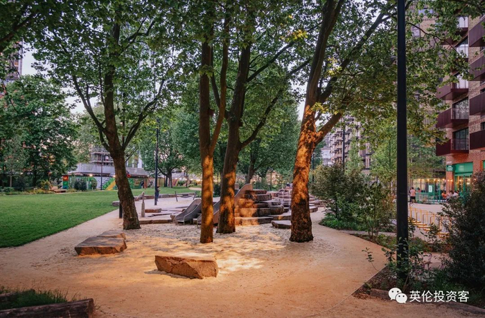 从项目出发搭乘10分钟公交,还可到达南伦敦大型公园 – 伯吉斯公园(Burgess Park),特别适合在春暖花开时到公园野餐或是晒晒太阳,好不惬意。
