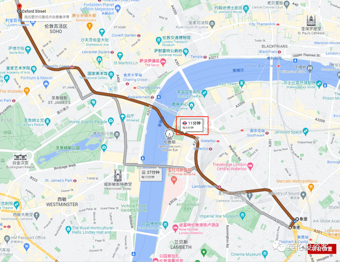 11分钟到达牛津街(Oxford Street)
