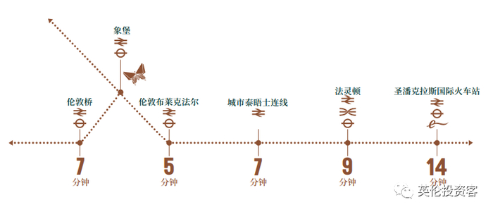 从项目出发搭乘ThamesLink,可快速到达伦敦多地,具体通勤时间如下: