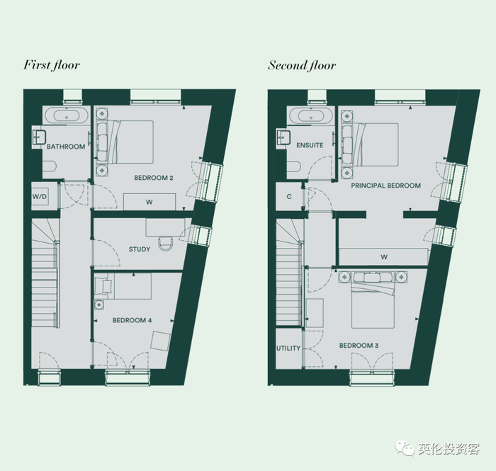 项目还有带花园的现房小别墅,三房House起价145万英镑(1203万人民币),四房House起价169.6万英镑(1407万人民币),户型如下:
