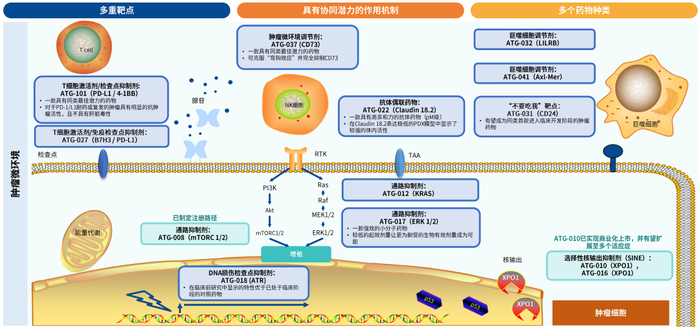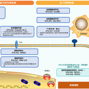 其中数款产品具有FIC潜力,比如阻断全新“别吃我”信号的CD24单克隆抗体ATG-031。数款产品具有BIC潜力,比如ATG-017(ERK 1/2抑制剂)、ATG-101(PD-L1/4-1BB双特异性抗体)、ATG-018(ATR抑制剂)、ATG-037(CD73小分子抑制剂)以及ATG-022(Claudin 18.2抗体偶联药物)。