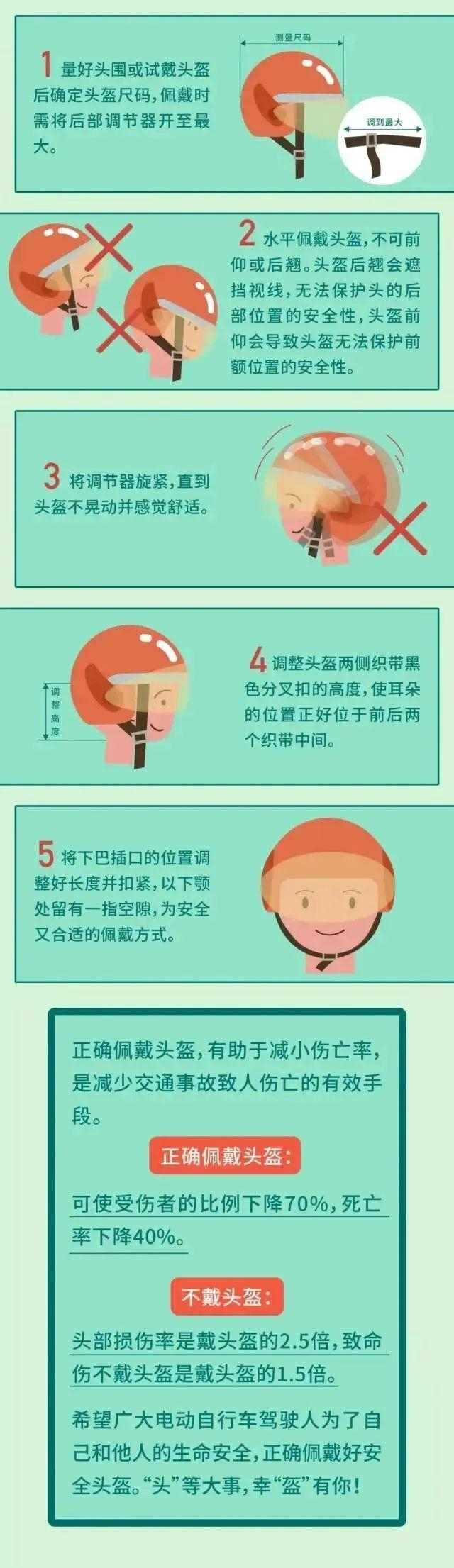 一图读懂如何正确佩戴头盔