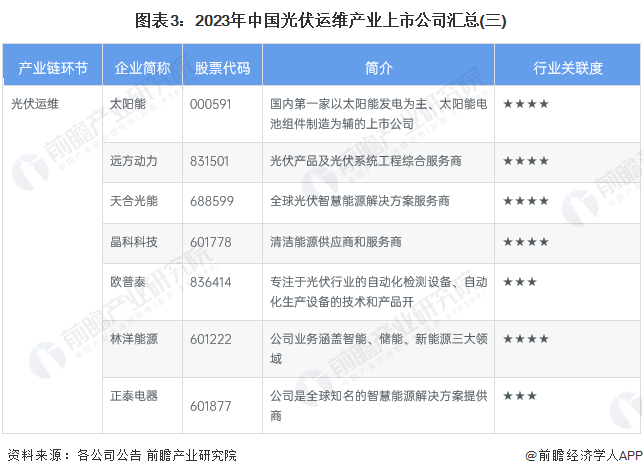 中游光伏运维上市公司:太阳能(000591)、远方动力(831501)、天合光能(688599)、晶科科技(601778)、欧普泰(836414)、林洋能源(601222)、正泰电器(601877)。