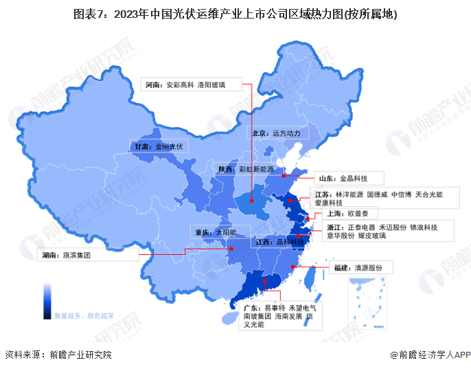 光伏运维产业链上的上市企业遍布全国多个省份,其中主要集中华东沿海地区,光伏运维上市企业分别分布在江苏省和浙江省。江苏省光伏运维上市企业有林洋能源和天合光能,浙江省光伏运维上市企业有正泰电器。