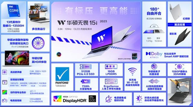 据介绍,华硕无畏15i 2023搭载了13代标压i5-13500H,且依旧通过了英特尔的Evo严苛认证,并标配高素质OLED华硕好屏,在高性能领域,堪称今年轻薄本界的“卷王”。