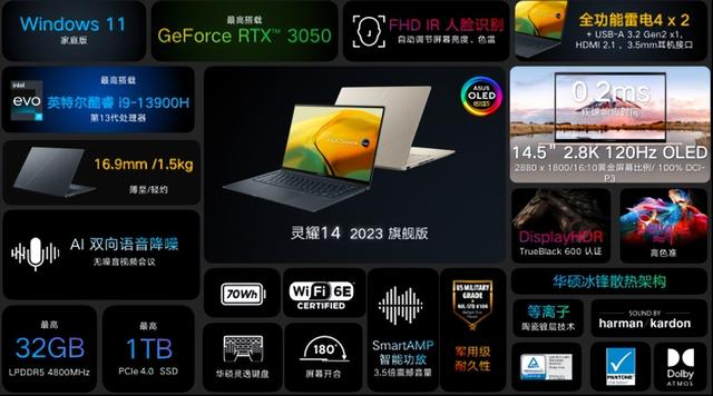 轻奢商务灵耀14 2023旗舰版:酷睿i9标压+RTX3050独显+限量配色