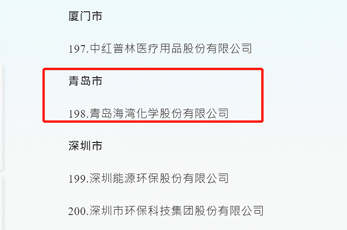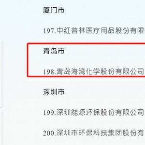 不过,央企系入围企业中,有两家在青岛,分别是中石化经纬有限公司、中车制动系统有限公司,加上青岛本土企业海湾化学,青岛共有3家企业入围。
