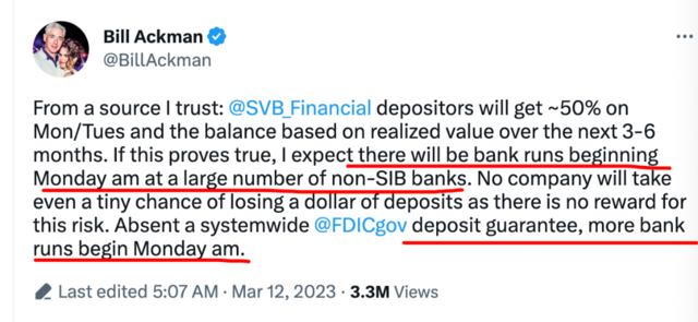 “华尔街战神”Bill Ackman连发多条推特警告美联储如果不给储户提供担保,后果将不可逆。