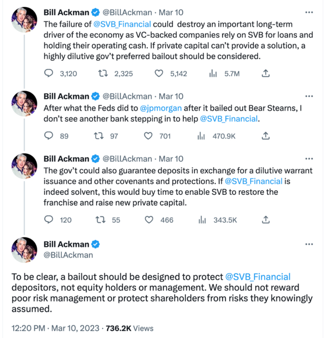 “华尔街战神”比尔·阿克曼(Bill Ackman)更是在3月10日连发多条推特疾呼: