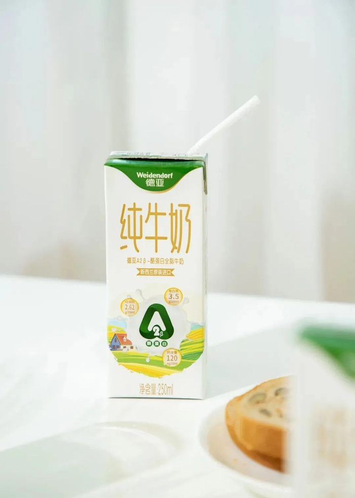 而A2β-酪蛋白具有更亲和人体的酪蛋白结构,与胃肠道的亲和度更高、耐受性更好,孩子更容易消化吸收。如果你家孩子肠胃敏感、脆弱,就可以试试德亚的这款牛奶~