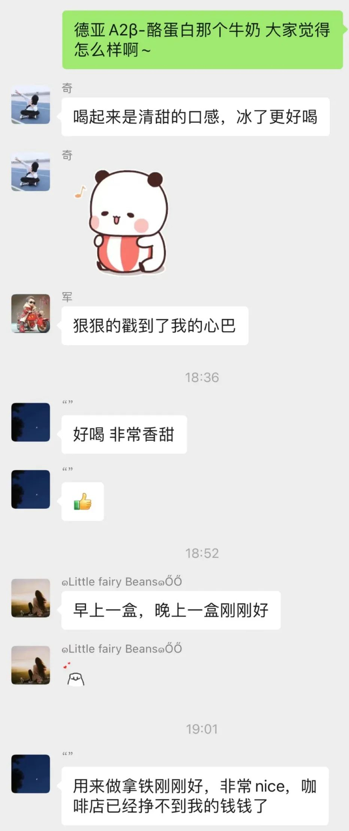 纯纯的牛乳香味,入口香醇、顺滑、细腻,还带着淡淡的回甘,几乎没有奶腥味,喝起来很舒服,有种能闻到芬芳的草原在🌞阳光下宁静铺开的感觉,鲜气十足。