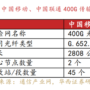 相关受益标的包括:高速光模块光源:源杰科技等;高速、长距离电信光模块:德科立、新易盛、中际旭创、天孚通信、光迅科技等;OTN设备:中兴通讯、烽火通信;G654.E光纤:长飞光纤、中天科技、亨通光电、永鼎股份等;WSS器件:光迅科技、腾景科技。