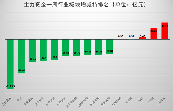 资金流向上,主力资金对工程建设、半导体、保险等行业板块颇为青睐,对光伏设备、电池、专用设备等行业则大幅减持;北向资金则加仓互联网服务、计算机软件等板块,对银行、非银行金融、白色家电等板块大幅减持。