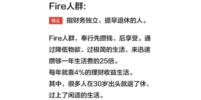 这个“FIRE”,不是“把公司老板炒掉”的意思,而是“经济独立,提前退休”。