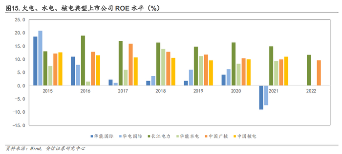 从稳定性角度来看,水电、火电和核电三种电源当中,火电业绩受煤价波动影响较大,业绩稳定性较差;水电业绩稳定性尚可,但也受每年来水波动影响;核电除设备检修外基本处于满发状态,业绩稳定性最高。
