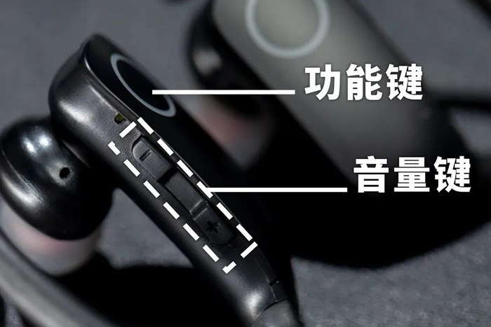 首先,这款蓝牙耳机操作简单,按键分为功能键和音量键:
