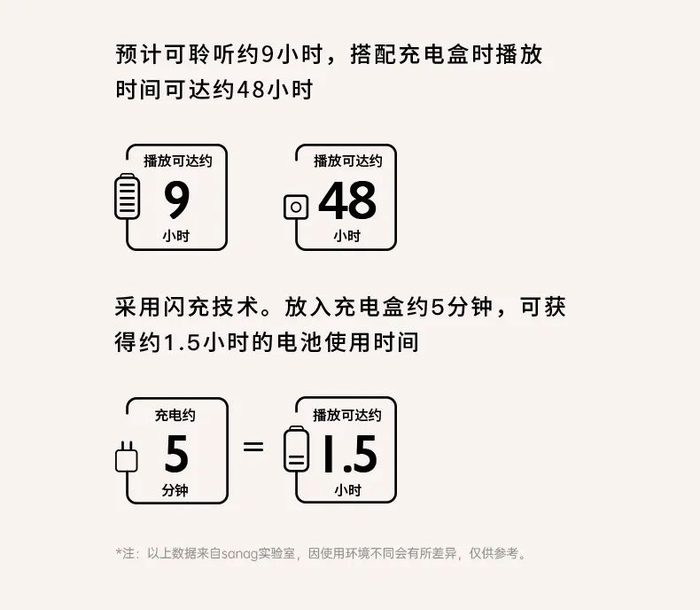 ps:闪充技术处理,放入充电盒5分钟,可以获得1.5小时的电池使用时间~