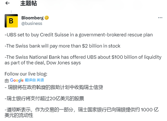 见证历史!全球震惊:瑞银宣布收购瑞信!