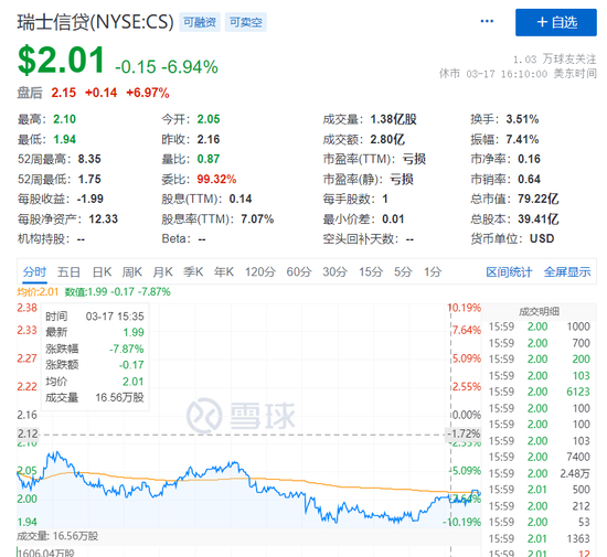 20多亿美元的价格,远低于瑞士信贷周五收盘价,当日该银行的估值约为74亿瑞士法郎(约合80亿美元)。