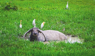 牛背上的牛背鹭 觅食者兼“保健医生”