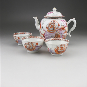 在造型方面表现出强烈的中西合璧的风格。除了艺术欣赏和装饰类的器物保留中国大多传统式样,为了适应欧美市场,根据西方人的生活方式而定制,生产出大量的具有生活实用性的器皿,如餐具、咖啡具、茶具、啤酒杯等。这些器皿常常都有不同的搭配系列, 除了配备各式不同规格的盘、碟、碗之外, 还有调味瓶、甜点杯、水果碟、烛台等多种样式的陈设摆件, 这些组合又因不同国家的生活习惯而有所不同。