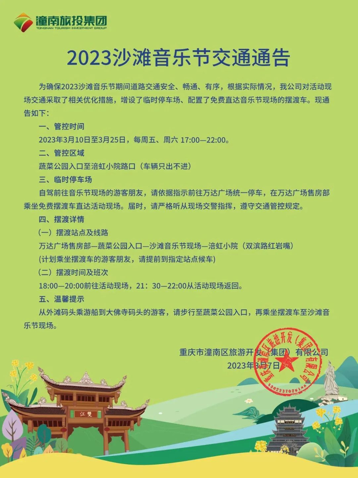 从重庆出发,1.5小时左右到达潼南,傍晚可以去阳光沙滩,欣赏一场嗨翻天的沙滩音乐节,重庆知名原创音乐人陈崎凡等倾情献唱,热血无畏的摇滚、酷炫狂欢的回忆青春的潮音,用音乐跟上春天的节拍。