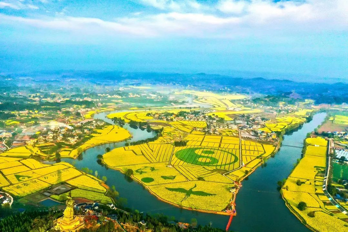第二天上午到潼南陈抟故里景区,欣赏万亩油菜花海。直径236米的太极图、仙鹤图等大地艺术景观,小火车、画舫船、直升机等水陆空360度欣赏油菜花海,还有马戏团、彩虹滑道、步步惊心等多种游乐项目,带你全方位感受春日盛宴。