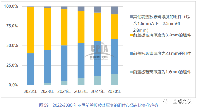 《中国光伏产业发展路线图(2022-2023 年)》之组件篇:2.0mm 及 1.6mm前盖板玻璃市场份额将逐步提升