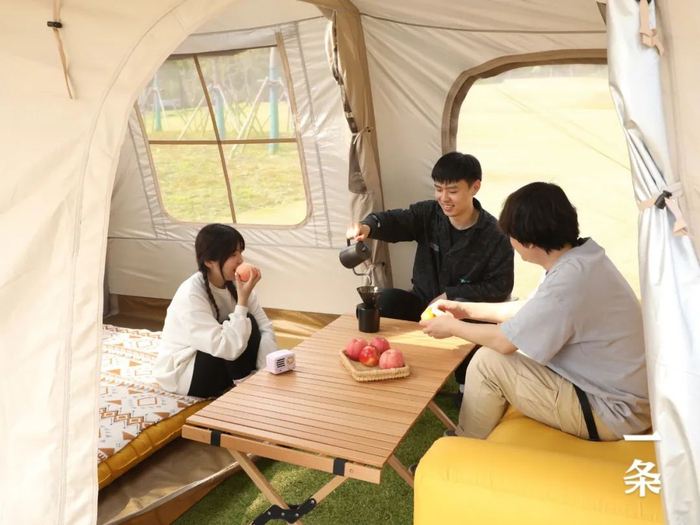 在帐篷里聊天、喝茶、烹饪,甚至烧烤,别有一番趣味。