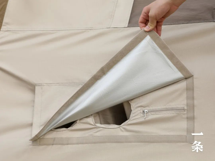 面料还采用了涂银工艺,可以防晒,避免在屋内被晒黑。