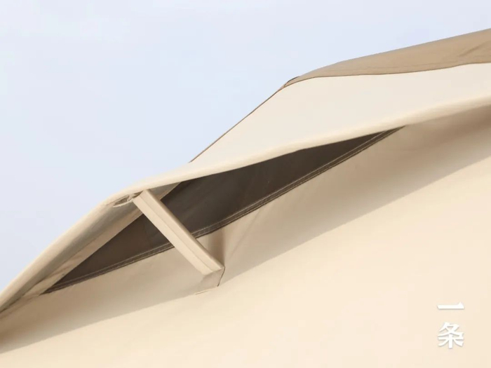 天幕的挑高为2米,采用加长设计,向外伸出了大约1.7米长的区域范围,又为这个“豪宅”争取到了生活面积。