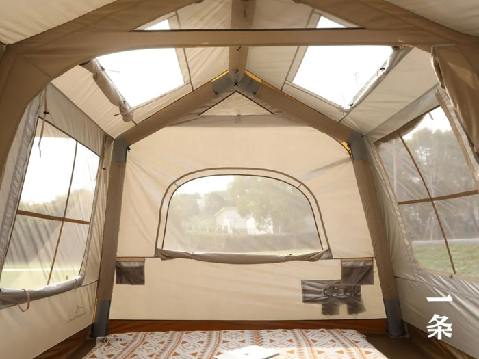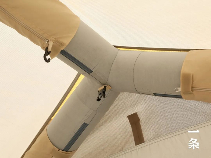 帐篷整体采用直径10cm的TPU充气柱支撑,它就像房子的结构框架,能把这个帐篷稳稳地撑起来。