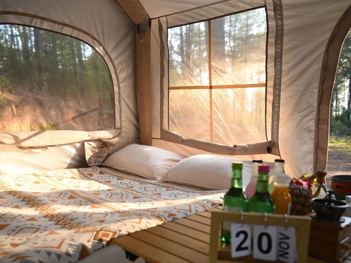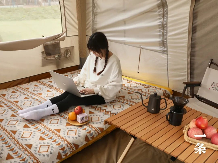 铺上地垫、充气床,躺平享受惬意的小日子。