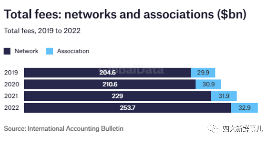 2019财年至2022财年国际会计网络和联盟总体收入情况: