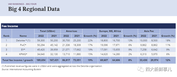 就费用收入增长和员工人数增长而言,22财年对全球四大会计师事务所来说都是积极的一年。