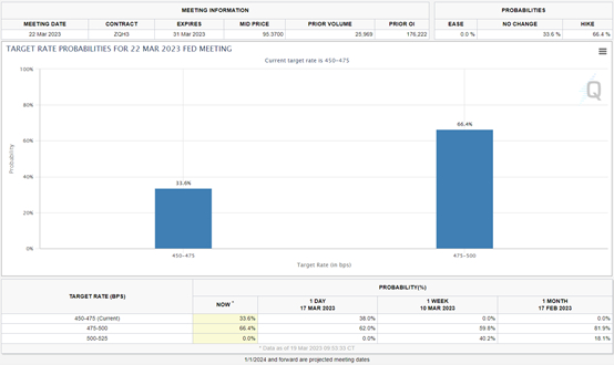 持续关注海外流动性风险事件后续影响,北京时间本周四凌晨2点,美联储将公布3月利率决定。目前而言市场利率预期转鸽,CME FedWatch模型根据外盘联邦利率期货价格反推的议息会议加息几率预测显示,3月加息25bp的几率为66.4%,维持利率水平不变的几率为33.6%,即预计3月大概率或仅加息25bp。若美联储如期放缓甚至暂停加息,从消息面角度对金价同样形成有利支撑。近期美元指数、美债收益率下行及避险情绪共同提振金价表现,短线持续看好金价走势,建议此前沪金多单继续持有。