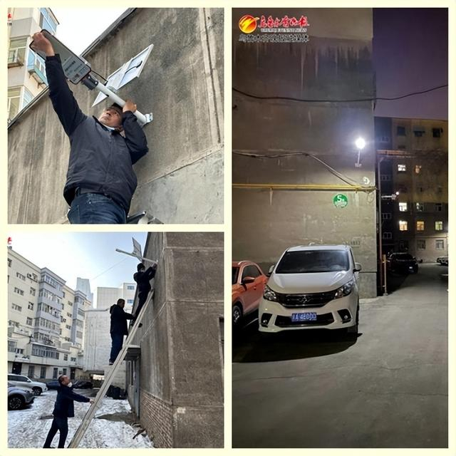 中国联通乌鲁木齐市分公司驻东风路社区工作队出资为老旧小区安装太阳能路灯。